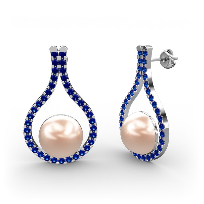 Pembe inci ve lab safir 18 ayar beyaz altın küpe