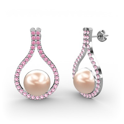 Pembe inci ve pembe kuvars 925 ayar gümüş küpe