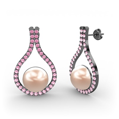 Pembe inci ve pembe kuvars 925 ayar siyah rodyum kaplama gümüş küpe