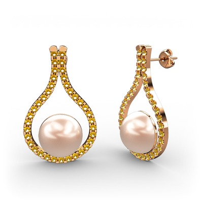 Pembe inci ve sitrin 14 ayar rose altın küpe