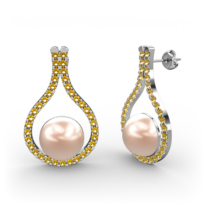 Pembe inci ve sitrin 925 ayar gümüş küpe
