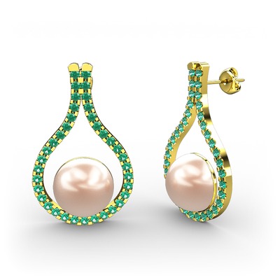 Pembe inci ve yeşil kuvars 14 ayar altın küpe