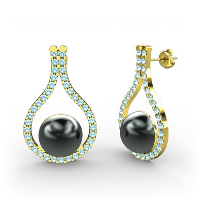 Siyah inci ve akuamarin 925 ayar altın kaplama gümüş küpe