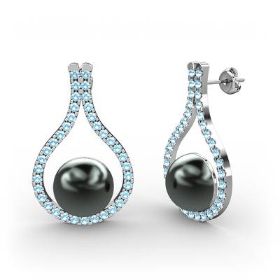 Siyah inci ve akuamarin 925 ayar gümüş küpe