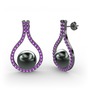 Siyah inci ve ametist 925 ayar siyah rodyum kaplama gümüş küpe