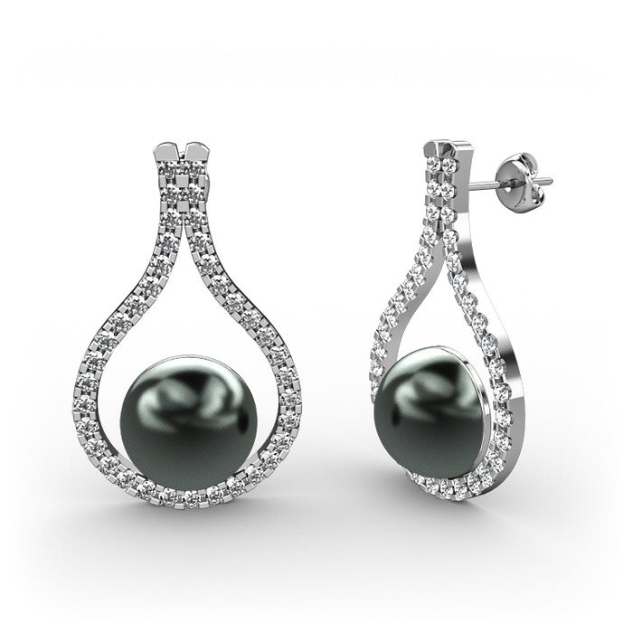Siyah inci ve beyaz zirkon 14 ayar beyaz altın küpe