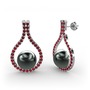 Siyah inci ve garnet 14 ayar beyaz altın küpe