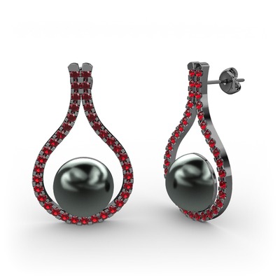 Siyah inci ve garnet 925 ayar siyah rodyum kaplama gümüş küpe