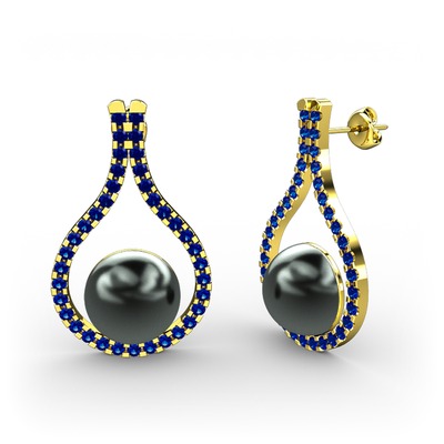 Siyah inci ve lab safir 925 ayar altın kaplama gümüş küpe