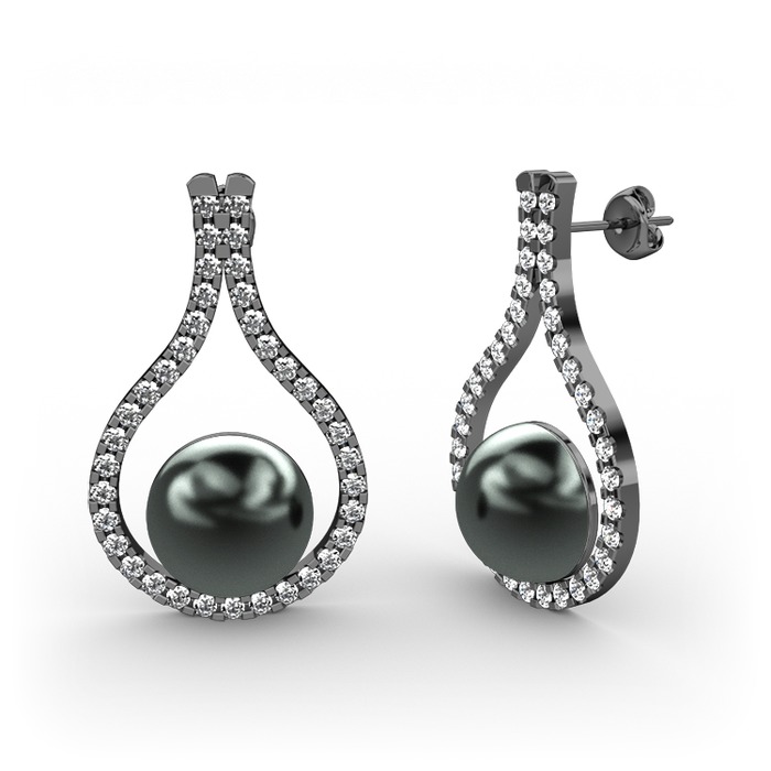 Siyah inci ve pırlanta 925 ayar siyah rodyum kaplama gümüş küpe (1.11 karat)