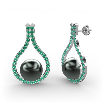 Siyah inci ve yeşil kuvars 8 ayar beyaz altın küpe