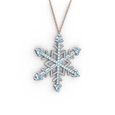 Akuamarin 18 ayar beyaz altın kolye (40 cm rose altın rolo zincir)