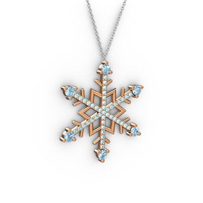 Akuamarin 18 ayar rose altın kolye (40 cm beyaz altın rolo zincir)