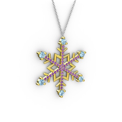 Akuamarin ve ametist 14 ayar altın kolye (40 cm beyaz altın rolo zincir)