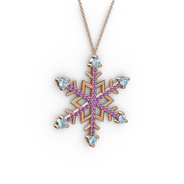 Akuamarin ve ametist 18 ayar rose altın kolye (40 cm rose altın rolo zincir)