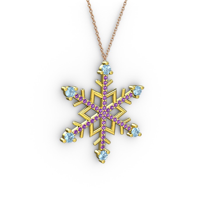 Akuamarin ve ametist 8 ayar altın kolye (40 cm rose altın rolo zincir)