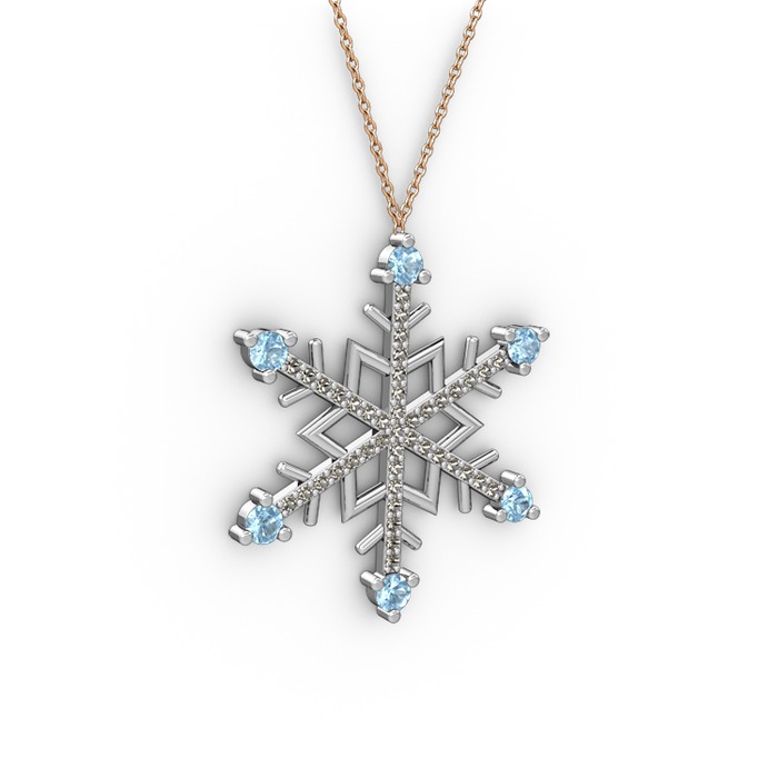 Akuamarin ve dumanlı kuvars 18 ayar beyaz altın kolye (40 cm rose altın rolo zincir)