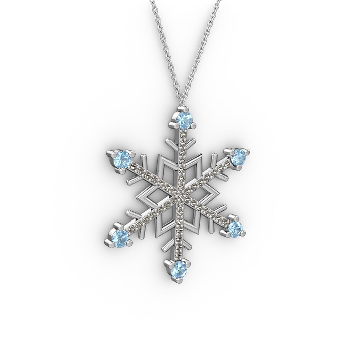 Akuamarin ve dumanlı kuvars 925 ayar gümüş kolye (40 cm gümüş rolo zincir)