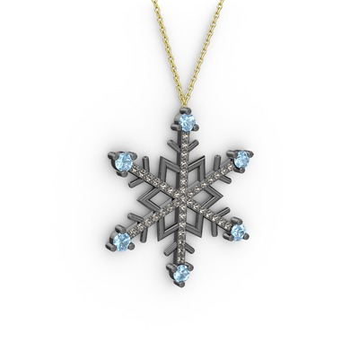 Akuamarin ve dumanlı kuvars 925 ayar siyah rodyum kaplama gümüş kolye (40 cm altın rolo zincir)