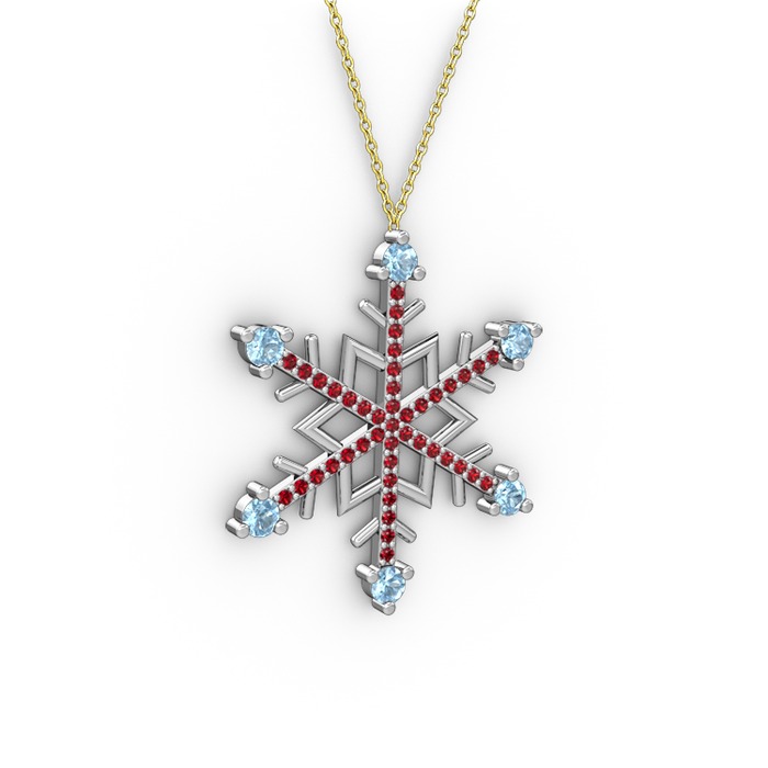 Akuamarin ve garnet 14 ayar beyaz altın kolye (40 cm altın rolo zincir)
