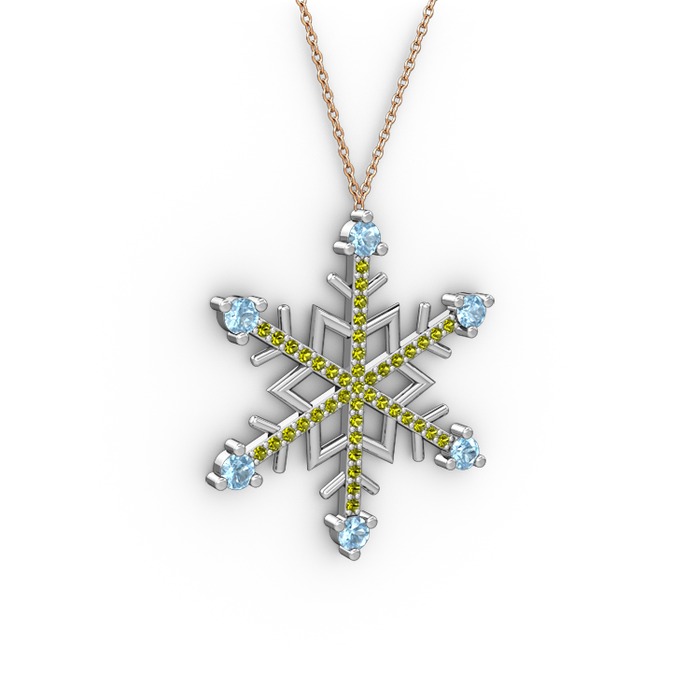 Akuamarin ve peridot 14 ayar beyaz altın kolye (40 cm rose altın rolo zincir)