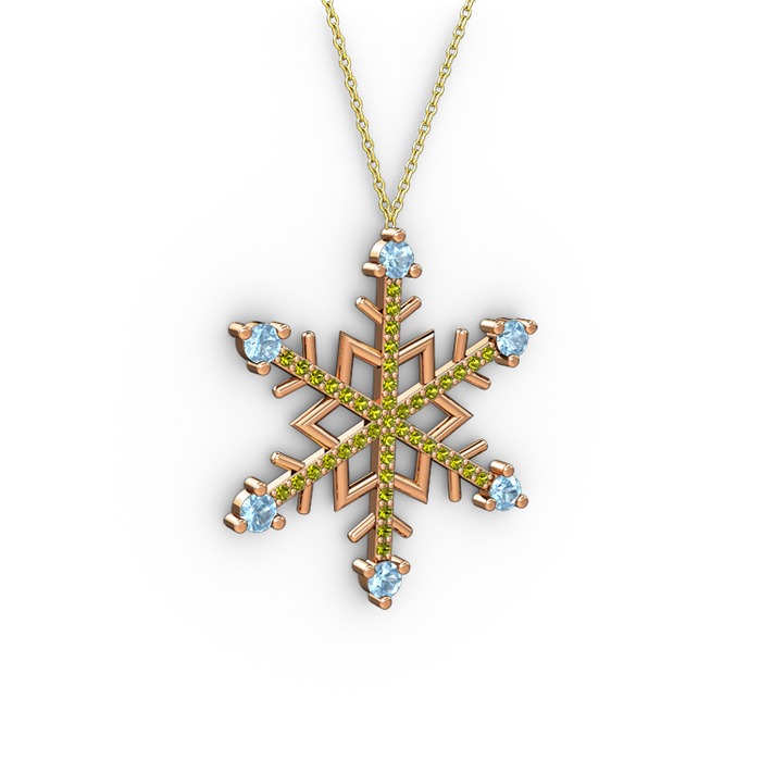 Akuamarin ve peridot 14 ayar rose altın kolye (40 cm altın rolo zincir)