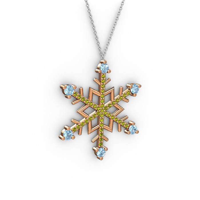 Akuamarin ve peridot 8 ayar rose altın kolye (40 cm beyaz altın rolo zincir)