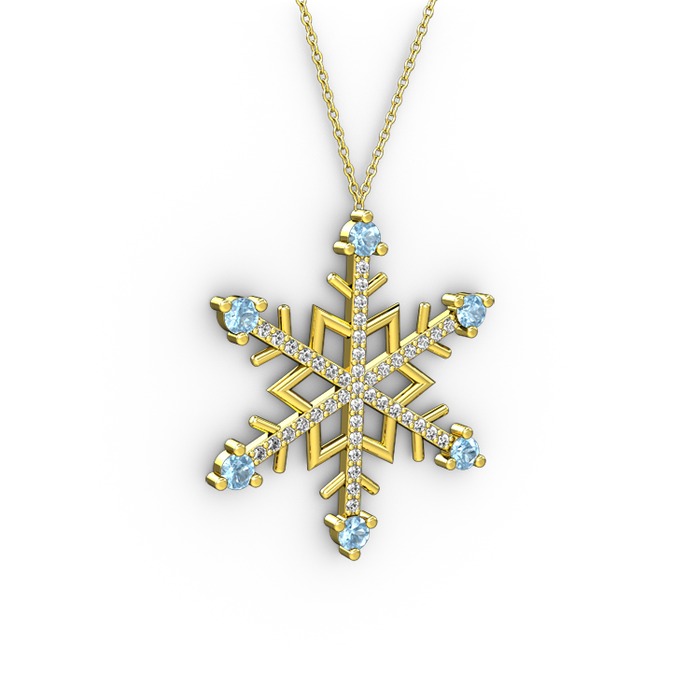 Akuamarin ve pırlanta 925 ayar altın kaplama gümüş kolye (0.473 karat, 40 cm altın rolo zincir)