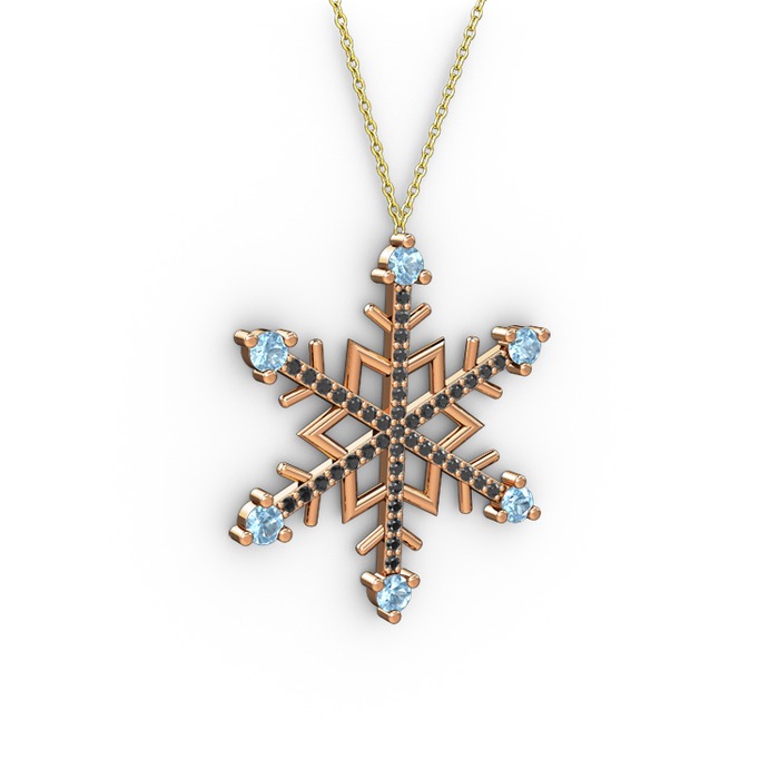 Akuamarin ve siyah zirkon 14 ayar rose altın kolye (40 cm altın rolo zincir)