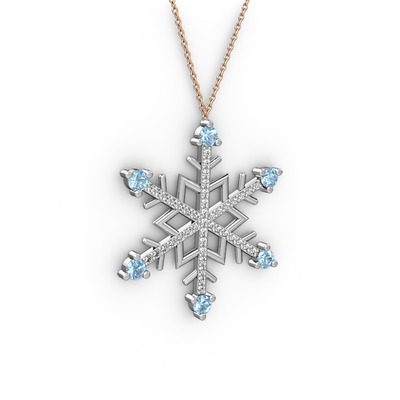 Akuamarin ve swarovski 925 ayar gümüş kolye (40 cm rose altın rolo zincir)