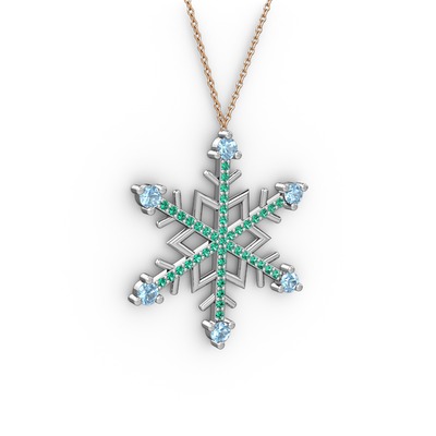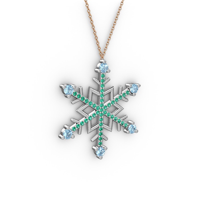Akuamarin ve yeşil kuvars 925 ayar gümüş kolye (40 cm rose altın rolo zincir)