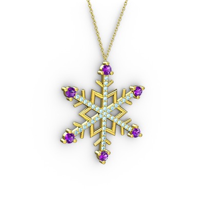 Ametist ve akuamarin 8 ayar altın kolye (40 cm altın rolo zincir)