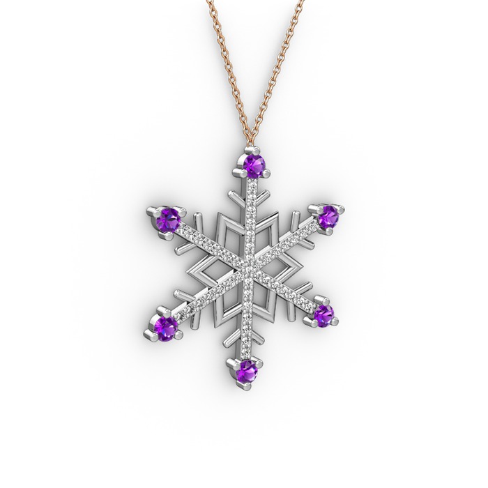 Ametist ve beyaz zirkon 925 ayar gümüş kolye (40 cm rose altın rolo zincir)