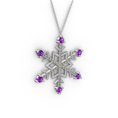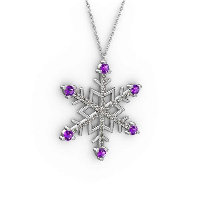 Ametist ve dumanlı kuvars 925 ayar gümüş kolye (40 cm beyaz altın rolo zincir)