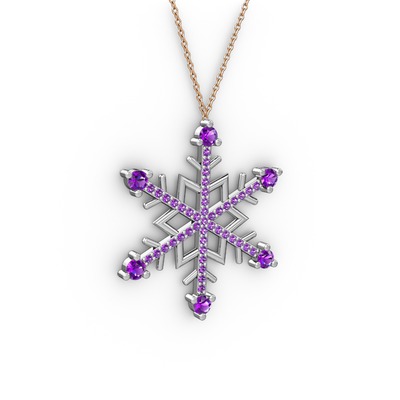 Ametist 925 ayar gümüş kolye (40 cm rose altın rolo zincir)
