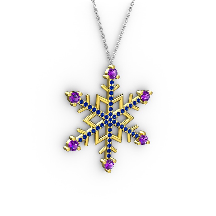 Ametist ve lab safir 18 ayar altın kolye (40 cm beyaz altın rolo zincir)
