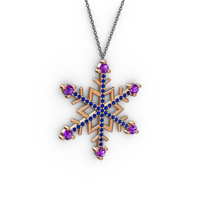 Ametist ve lab safir 8 ayar rose altın kolye (40 cm gümüş rolo zincir)
