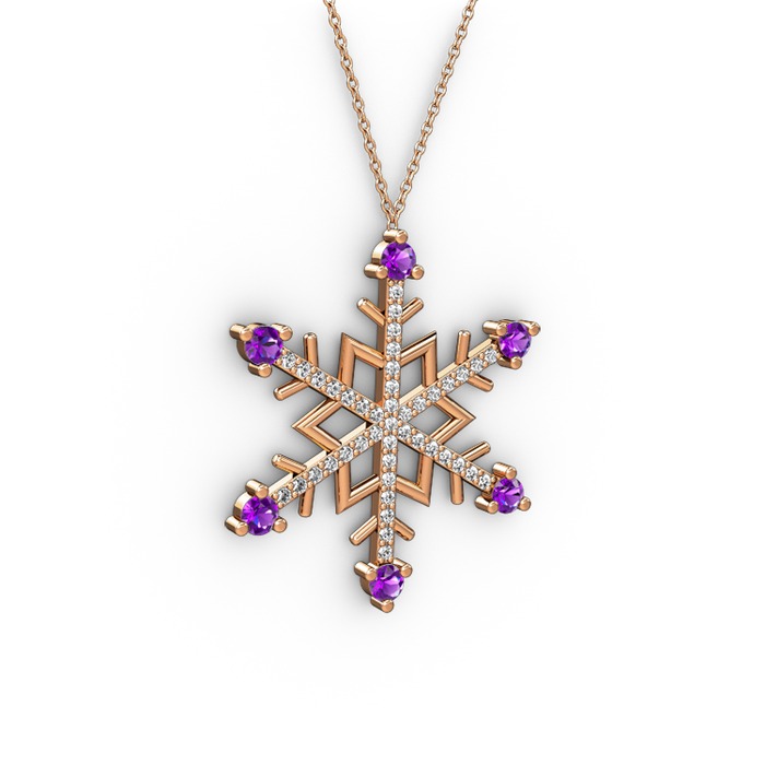 Ametist ve pırlanta 14 ayar rose altın kolye (0.473 karat, 40 cm gümüş rolo zincir)
