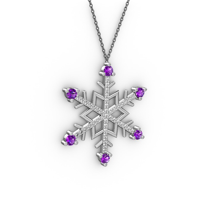 Ametist ve pırlanta 18 ayar beyaz altın kolye (0.473 karat, 40 cm gümüş rolo zincir)