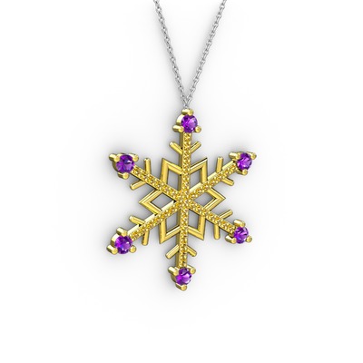 Ametist ve sitrin 18 ayar altın kolye (40 cm beyaz altın rolo zincir)
