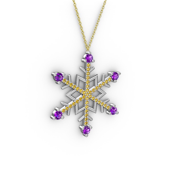 Ametist ve sitrin 8 ayar beyaz altın kolye (40 cm altın rolo zincir)