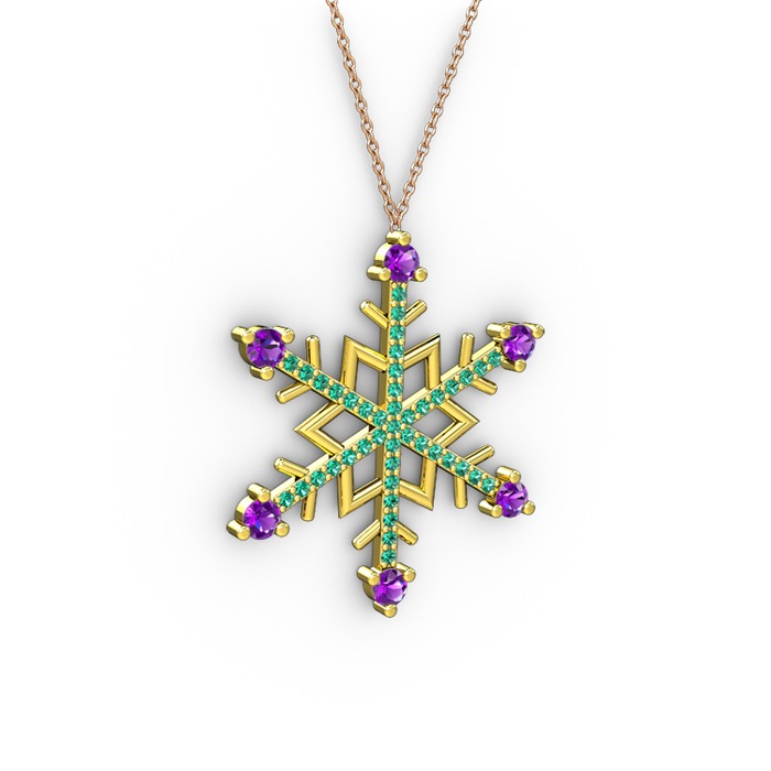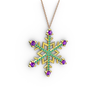 Ametist ve yeşil kuvars 18 ayar altın kolye (40 cm gümüş rolo zincir)