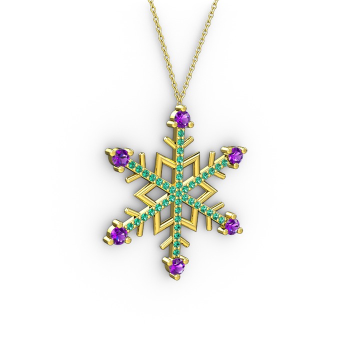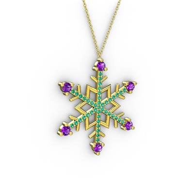 Ametist ve yeşil kuvars 925 ayar altın kaplama gümüş kolye (40 cm altın rolo zincir)