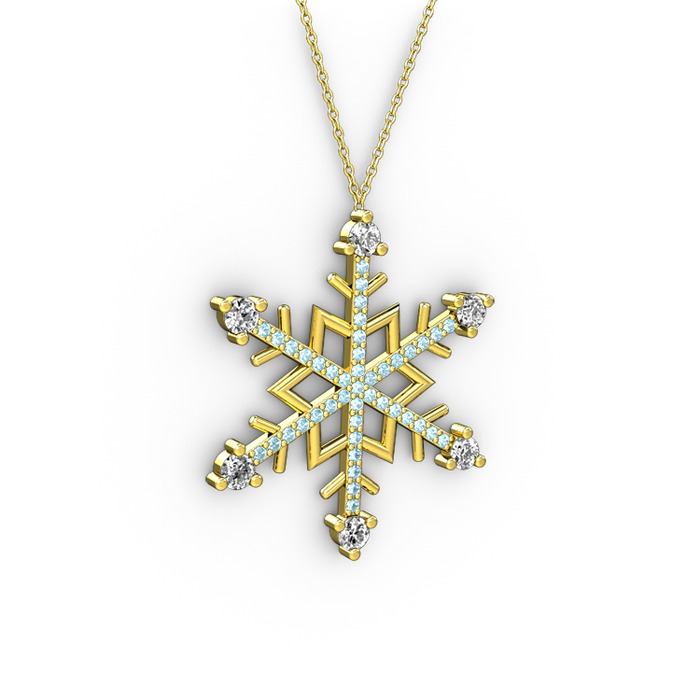 Beyaz zirkon ve akuamarin 8 ayar altın kolye (40 cm altın rolo zincir)