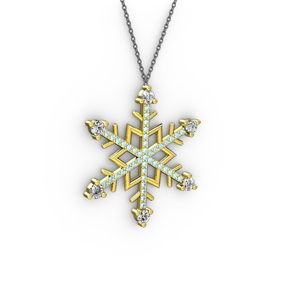 Beyaz zirkon ve akuamarin 925 ayar altın kaplama gümüş kolye (40 cm gümüş rolo zincir)