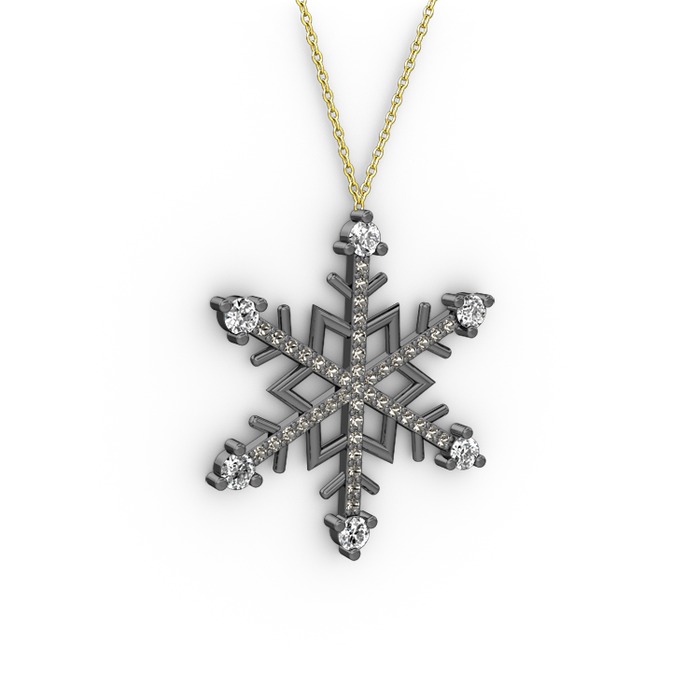Beyaz zirkon ve dumanlı kuvars 925 ayar siyah rodyum kaplama gümüş kolye (40 cm altın rolo zincir)