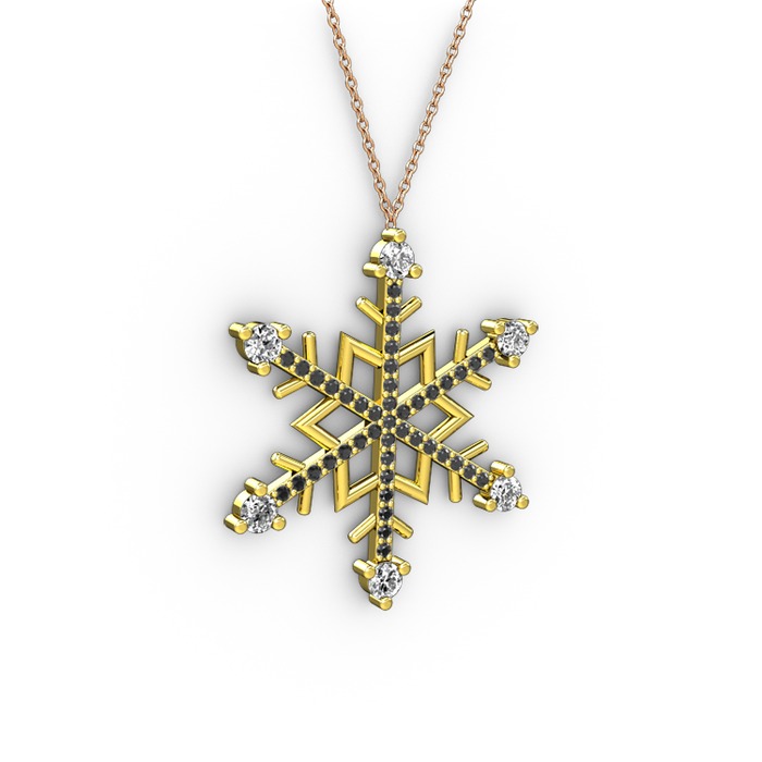 Beyaz zirkon ve siyah zirkon 18 ayar altın kolye (40 cm rose altın rolo zincir)