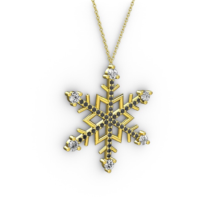Beyaz zirkon ve siyah zirkon 925 ayar altın kaplama gümüş kolye (40 cm altın rolo zincir)