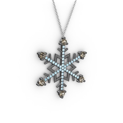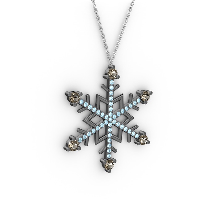 Dumanlı kuvars ve akuamarin 925 ayar siyah rodyum kaplama gümüş kolye (40 cm beyaz altın rolo zincir)