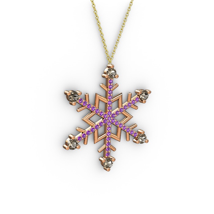 Dumanlı kuvars ve ametist 14 ayar rose altın kolye (40 cm gümüş rolo zincir)